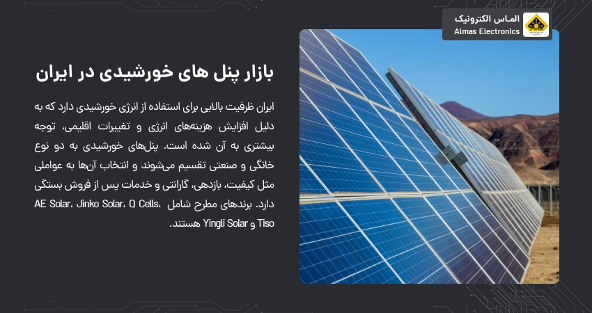 ایران به دلیل برخورداری از آفتاب فراوان و شرایط جغرافیایی مناسب، پتانسیل بالایی برای استفاده از انرژی خورشیدی دارد. در سالهای اخیر، با توجه به افزایش هزینههای انرژی و تغییرات اقلیمی، توجه به انرژیهای تجدیدپذیر به ویژه انرژی خورشیدی افزایش یافته است. در این راستا، بازار پنلهای خورشیدی در ایران رونق گرفته و برندهای مختلفی با کیفیتهای متفاوت، وارد این بازار شدهاند.